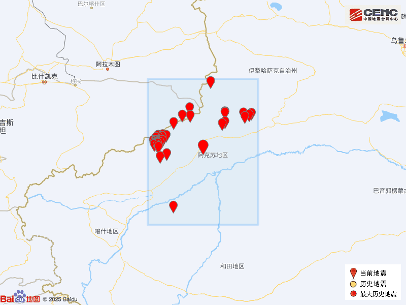 速报参数: 据中国地震台网正式测定,2月1日8时7分在新疆阿克苏地区阿克苏市发生3.4级地震,震源深度33公里,震中位于北纬40.99度,东经80.31度。