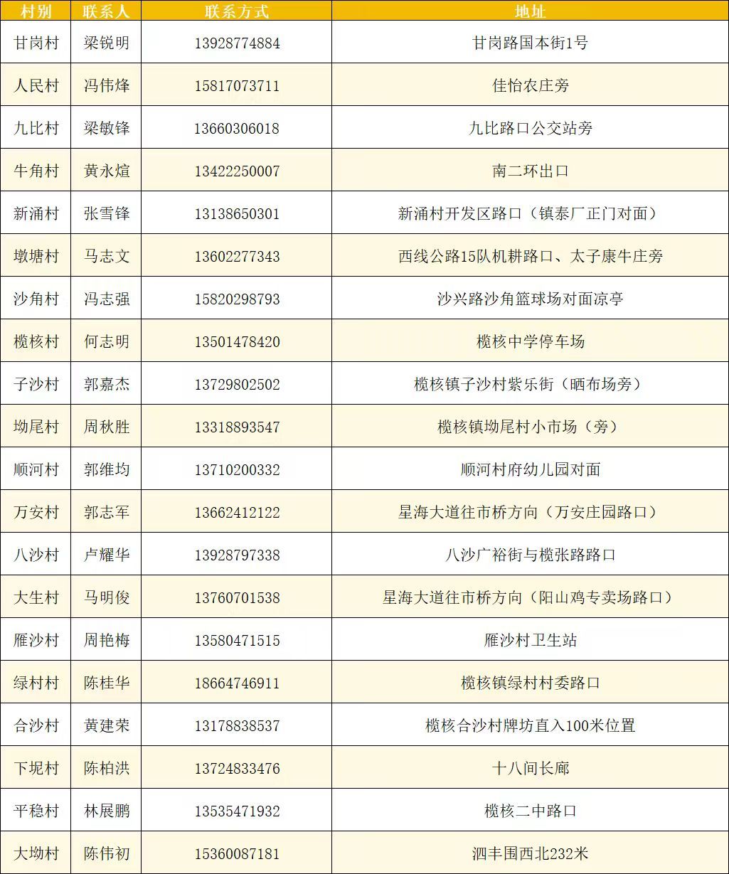 据了解,目前南沙区榄核镇仍有大量优质甘蔗待销。为方便社会各界爱心人士直接前往选购,现将榄核镇20个村的甘蔗助农直购点联系方式公布如下,市民朋友也可致电联系后前往田间自采。